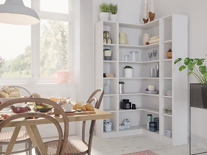 6. ECKE IM ZIMMER: DAS SCHMALE ECKREGAL FÜR KLEINE KÜCHEN6. ECKE IM ZIMMER: DAS SCHMALE ECKREGAL FÜR KLEINE KÜCHEN