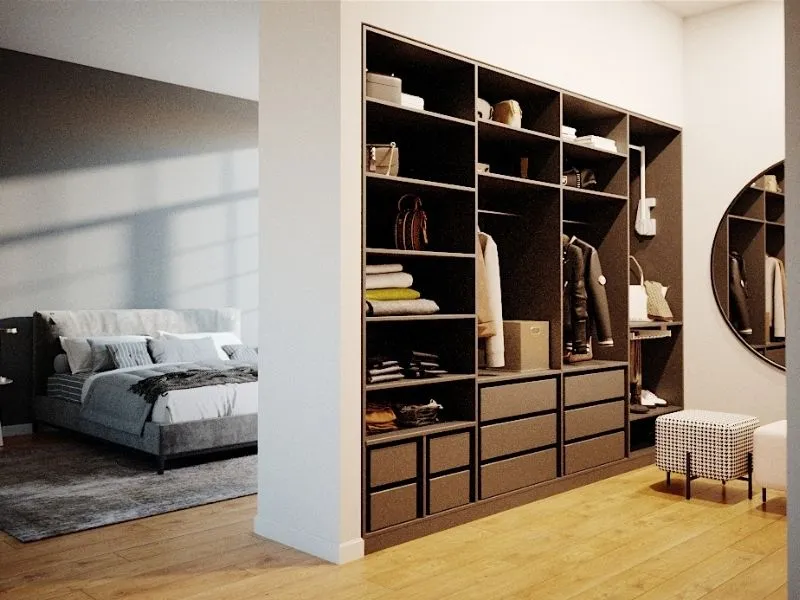 - Denke darüber nach, wie der Schrank funktionieren soll. Soll er offene Elemente haben? Brauchst Du spezielle Aufbewahrungslösungen wie Schubladen, Kleiderstangen, Schuhböden oder herausziehbare Tablarböden?