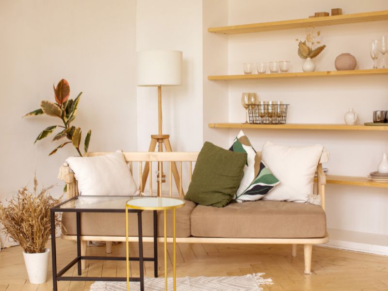 Bei den Einrichtungsideen für das Wohnzimmer gilt: Achte darauf, dass Materialien, Textilien und Farben zueinander passen.