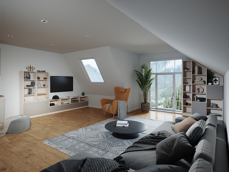 Genügend Stauraum im Wohnzimmer mit Regalen nach Mass