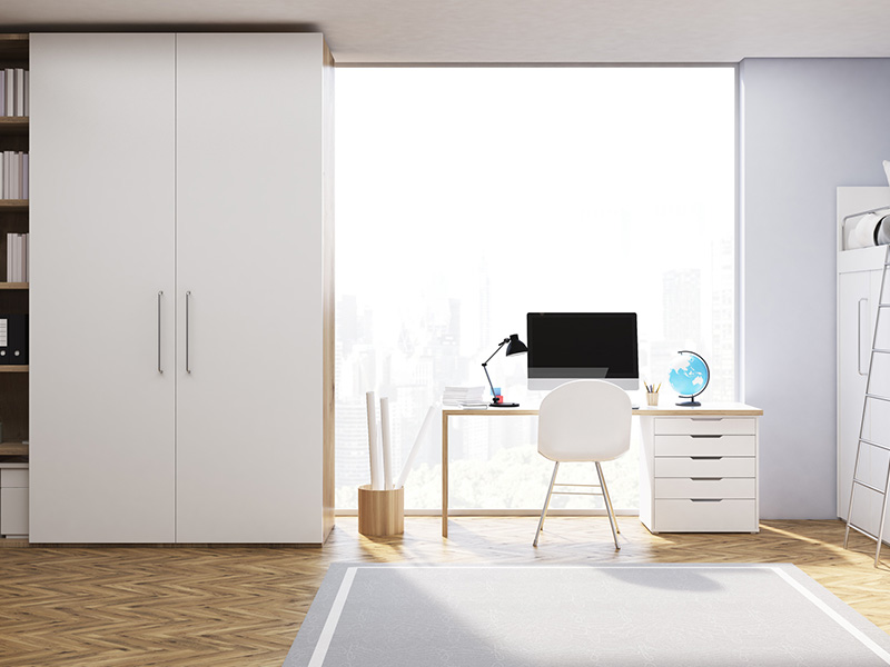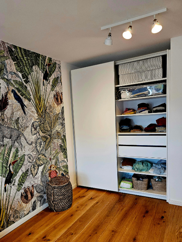 Cleverer Stauraum: Gerade die erste Wohnung hat oft nur wenige Quadratmeter. Deshalb kann es sich lohnen, in passgenaue Möbel, die sich ideal in die räumliche Situation einfügen, zu investieren. Insbesondere ein passgenauer Kleiderschrank nimmt unzählige Dinge auf, spart Platz und sorgt für ein harmonisches und stimmiges Wohnbild.