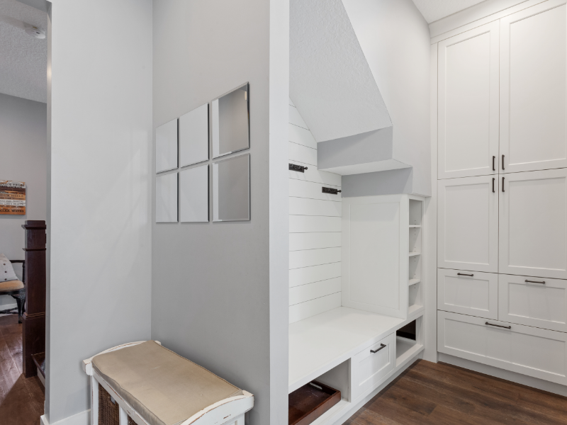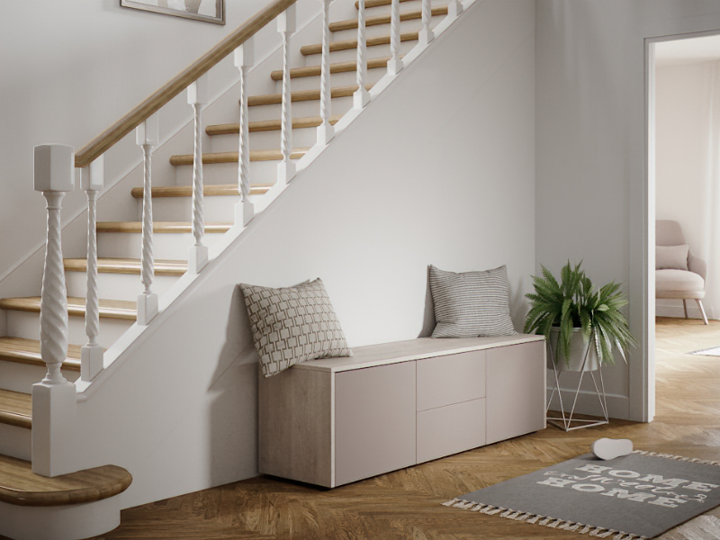 Wie wir aus unzähligen Gesprächen mit unseren Kunden wissen, ist Stauraum im Treppenhaus ein wichtiges Thema. Schuhe, Jacken, Mützen oder Schals lassen sich am besten in Garderobenschränken, Kommoden oder Sideboards verstecken. Die Herausforderung: Möbel von der Stange haben im Treppenhaus nur begrenzten Nutzen. Für individuelle Wandflächen, Nischen und Leerflächen passen besser maßgefertigte Einbaumöbel. Vor allem der Bereich unter den Treppen ist häufig eine „tote“ Ecke, die kaum genutzt wird.