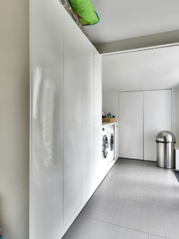 – Abgestimmtes Dekor: Die Haushaltsschränke sollten sich nahtlos in die Umgebung einfügen. Besonders eignen sich deshalb Möbel in Weiß, die nahezu unsichtbar vor einer neutral weiß gestrichenen Wand stehen. Ist Ihr Einrichtungsstil eher rustikal und ländlich, dann gib den Schränken einfach eine passende Holzoptik – auffällig unauffällig ist das Credo!