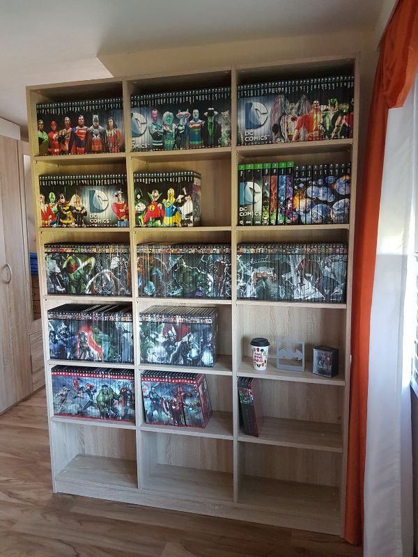 Besondere Editionen und Reihen von Comicbüchern werden mit Buchrückenmotiv veröffentlicht. Plane dementsprechend die Fächer des Bücherregals. So entstehen wunderbare Fronten, die Deine Liebe zu Comics und Graphic Novels auch für andere Betrachter ansprechend ausdrückt.