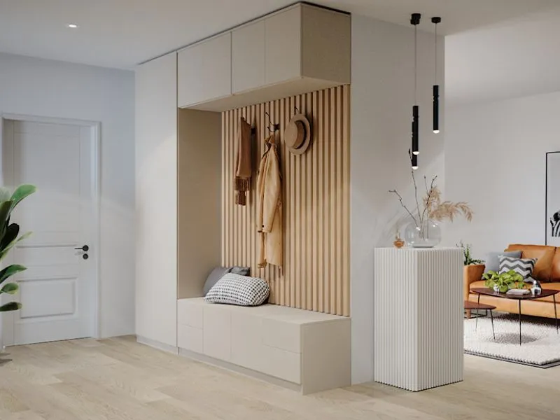 LAMELLENWAND HINTER DEM GARDEROBENSCHRANKLAMELLENWAND HINTER DEM GARDEROBENSCHRANK