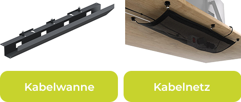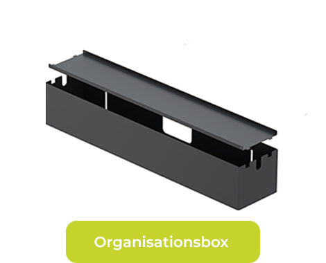 Unsere höhenverstellbaren Schreibtische können mit einer praktischen Organisationsbox und einer breiten Schublade ausgestattet werden. Darüber hinaus hast Du die Möglichkeit Dein Kabelmanagement durch bspw. Kabelnetze, Kabelwannen oder Durchlässe zu verbessern.